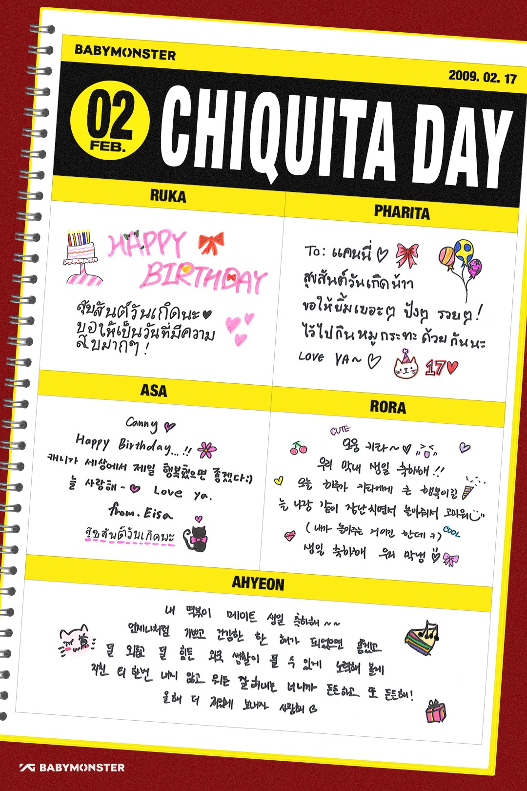คำอวยพรจากพี่ๆเมมเบอร์ในวง BABYMONSTER ที่ให้กับ MONSTER MAKNAE ของเรา CHIQUITA เนื่องในวันคล้ายวันเกิดในวันนี้