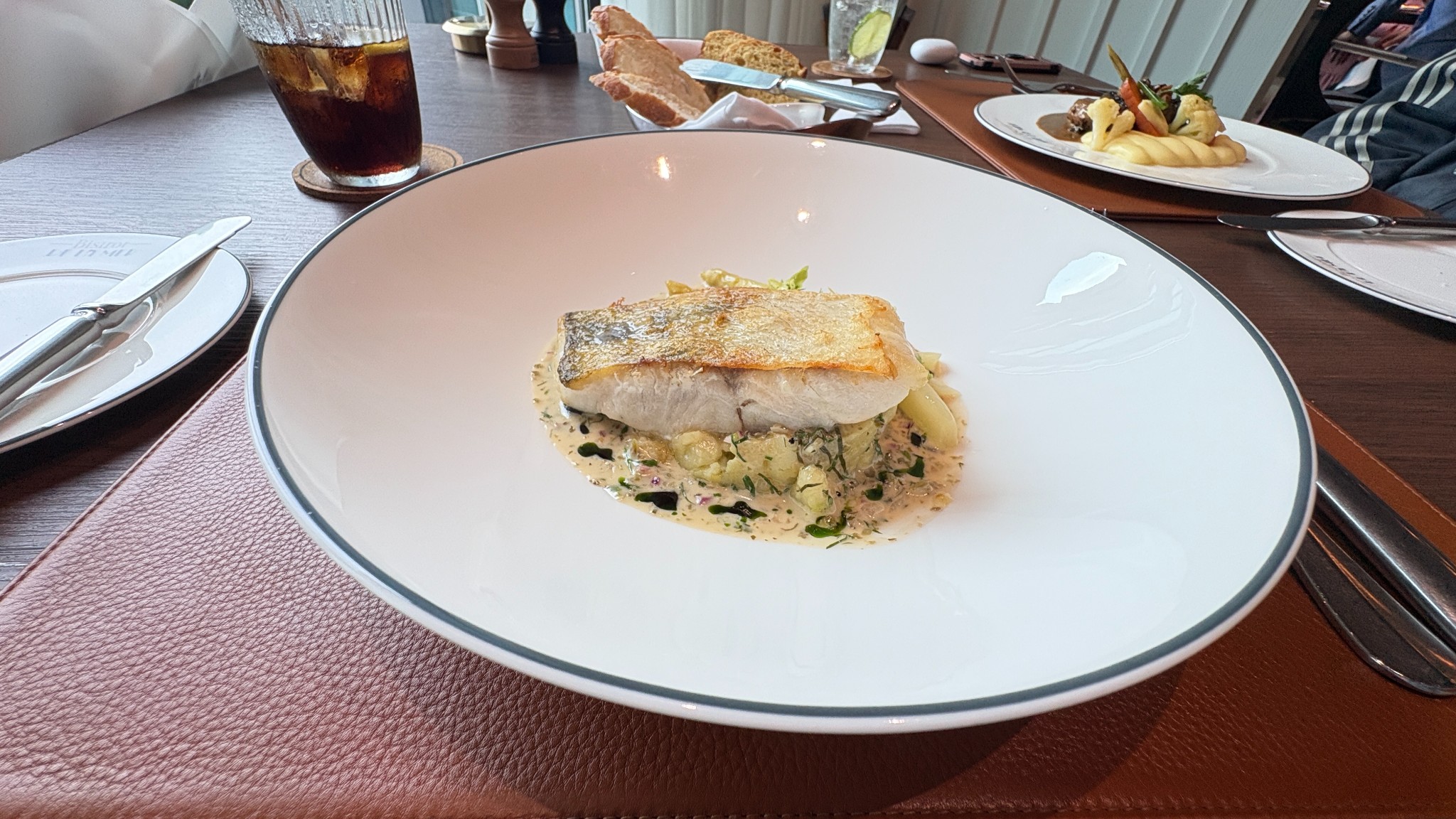 เราเลือก Pike Perch ปลาสดมาก ไม่คาวเลย หนังกรอบกำลังดี ด้านล่างเป็นมันบดเนียน ๆ มีรสเปรี้ยวอ่อน ๆ ช่วยตัดเลี่ยนได้ดีมาก