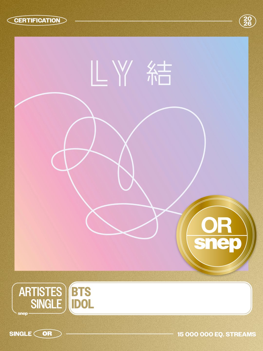 เพลง "IDOL" ของ BTS ได้รับการรับรองระดับ 📀 Gold อย่างเป็นทางการในประเทศฝรั่งเศส (SNEP)