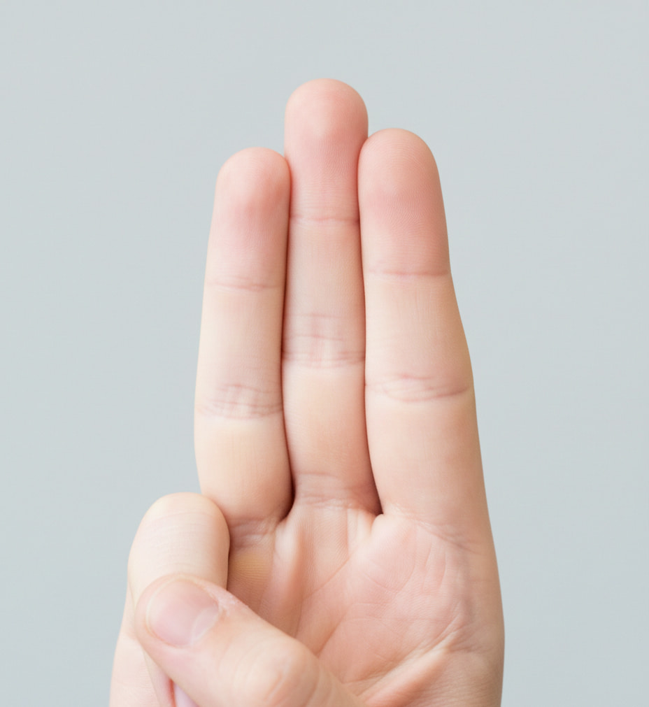 วิธีทำ แบบทดสอบก็ง่ายๆ ให้คุณ หงายฝ่ามือขวา ขึ้นมากำมือ และกลางเฉพาะนิ้วชี้-นิ้วกลาง-นิ้วนาง ขึ้นมา แบบนี้