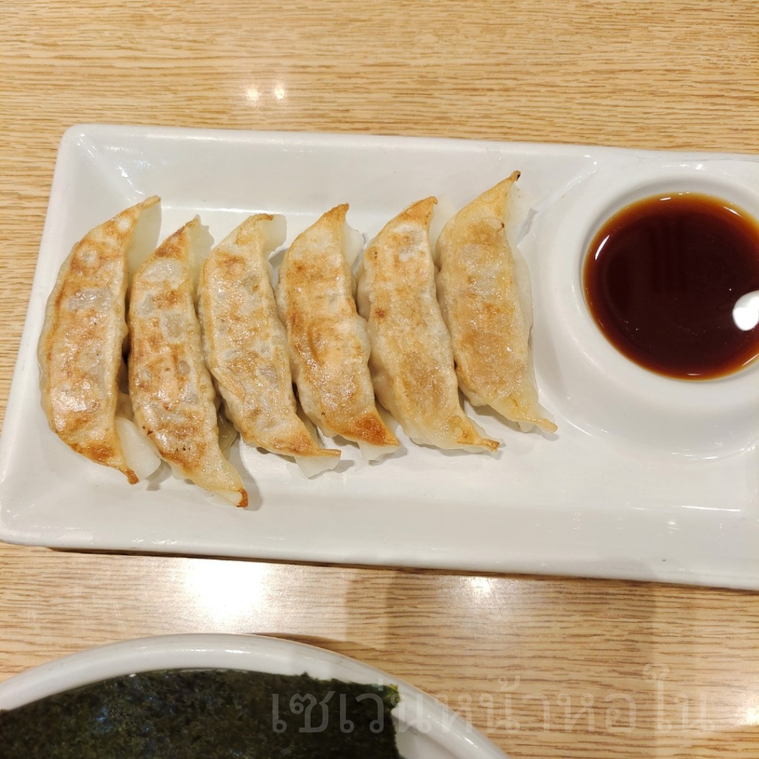 เลยบอกว่าเอาเกี๊ยวซ่าส์ 6 ชิ้น ไปก่อน ถ่วงเวลาให้เราดูเมนูได้อีก