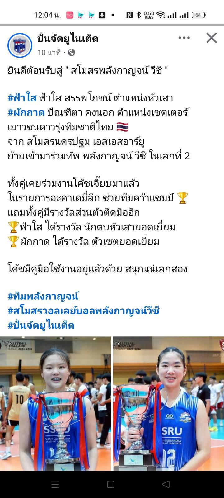#ต้อนรับผู้เล่นใหม่คนที่2ลุยเลกสอง 🫶🥳 สโมสรฮารุดอทชลบุรี ราชมงคลธัญบุรี วีซี ประกาศคว้าตัว "เดียร์" จรัสพร บรรดาศักดิ์ เข้าร่วมทีมเพื่อลงทำการแข่งขันวอลเลย์บอลไทยแลนด์ลีก 2026 ในเลกที่สองอย