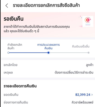 มีใครเคยกดยกเลิกสินค้า แล้ว สถานะค้างอยู่ที่ "การประมวลผลการคืนเงิน" บ้าง
