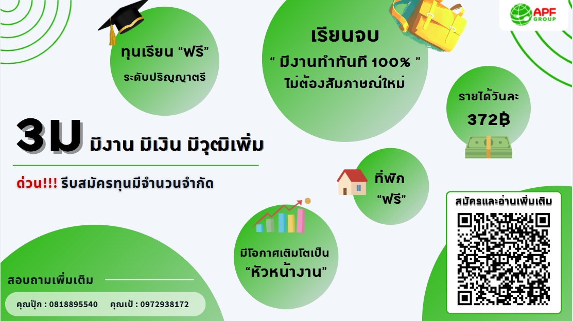 อำพลฟูดส์ ทุน 3 ม (มีเงิน มีงาน มีวุฒิเพิ่ม) สำหรับนักศึกษาที่เรียนจบ ปวส. แล้วอยากเรียนต่อ ป.ตรี