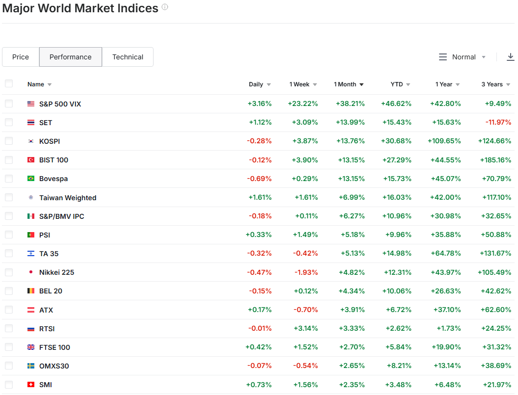 Set บวกมากสุดใน 1 เดือนจาก index หลักทั่วโลก