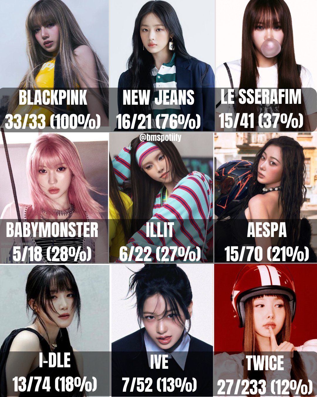 Most Average percentage K-Pop Girl Group songs (Without Remixes & Version) that reach 100M streams on Spotify:
