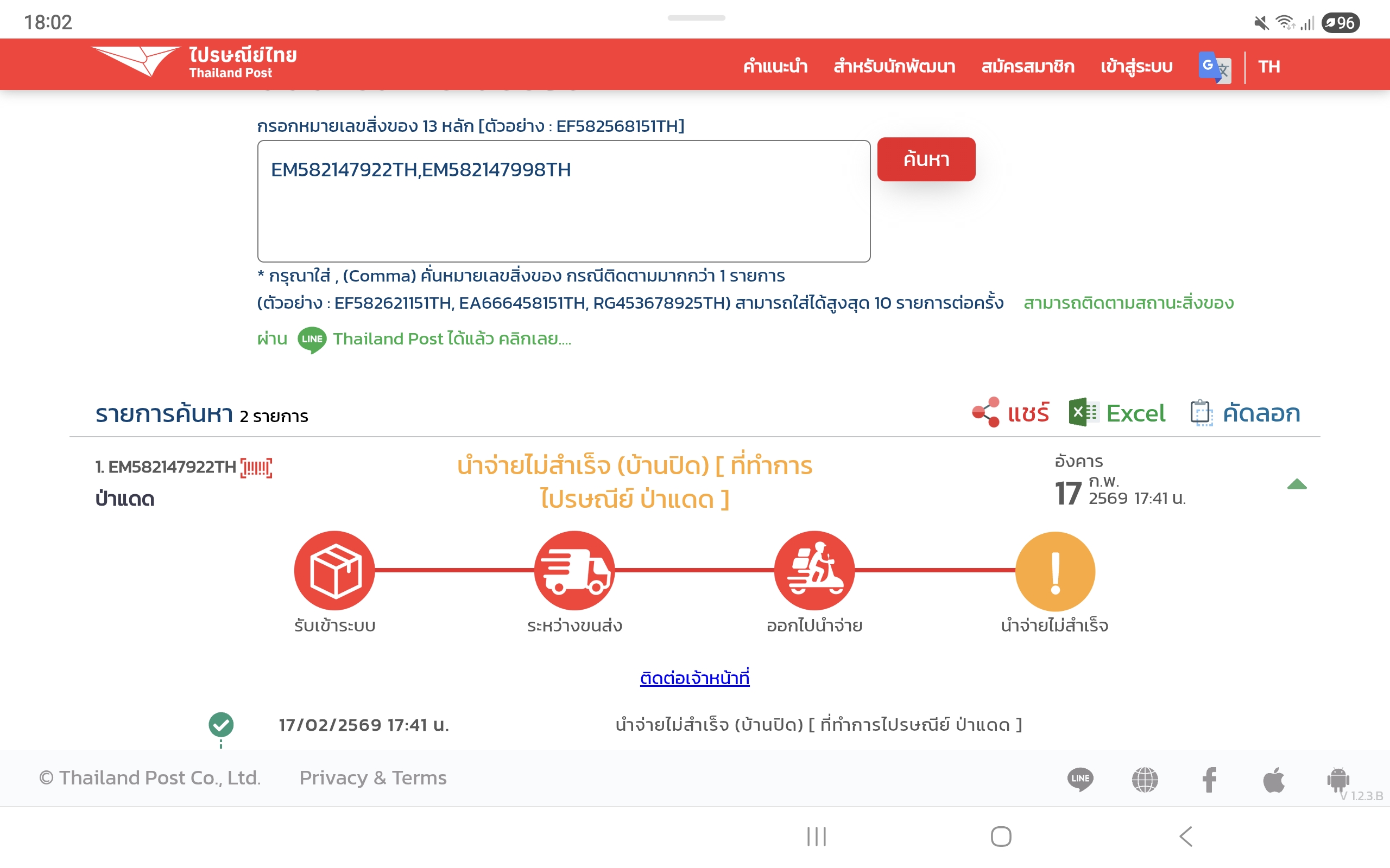 ทำไมถึงนำจ่ายไม่สำเร็จเเละช้าครับ ไปรษณีย์ไทย