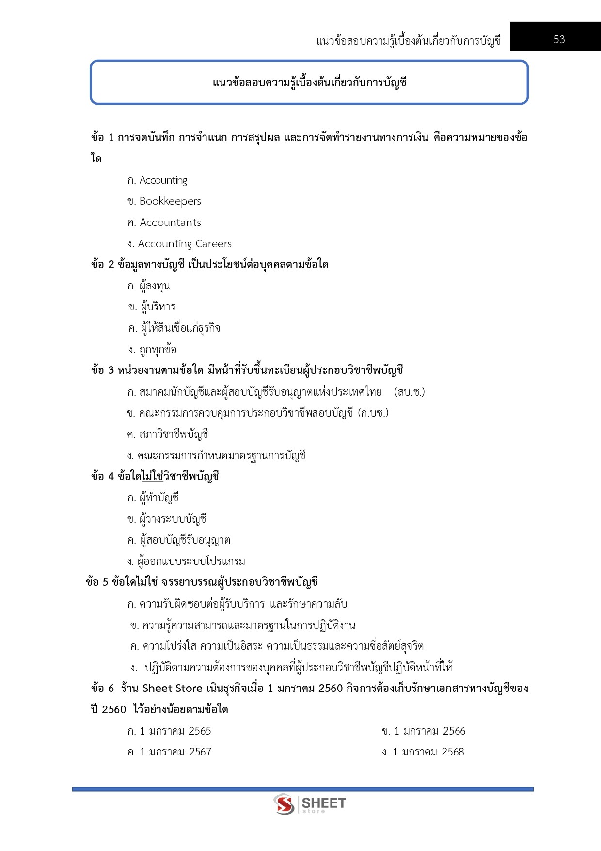 - แนวข้อสอบความรู้เบื้องต้นเกี่ยวกับการบัญชี