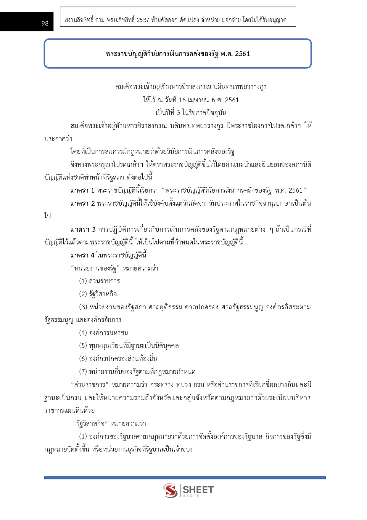 - แนวข้อสอบพระราชบัญญัติวินัยการเงินการคลังของรัฐ พ.ศ. 2561