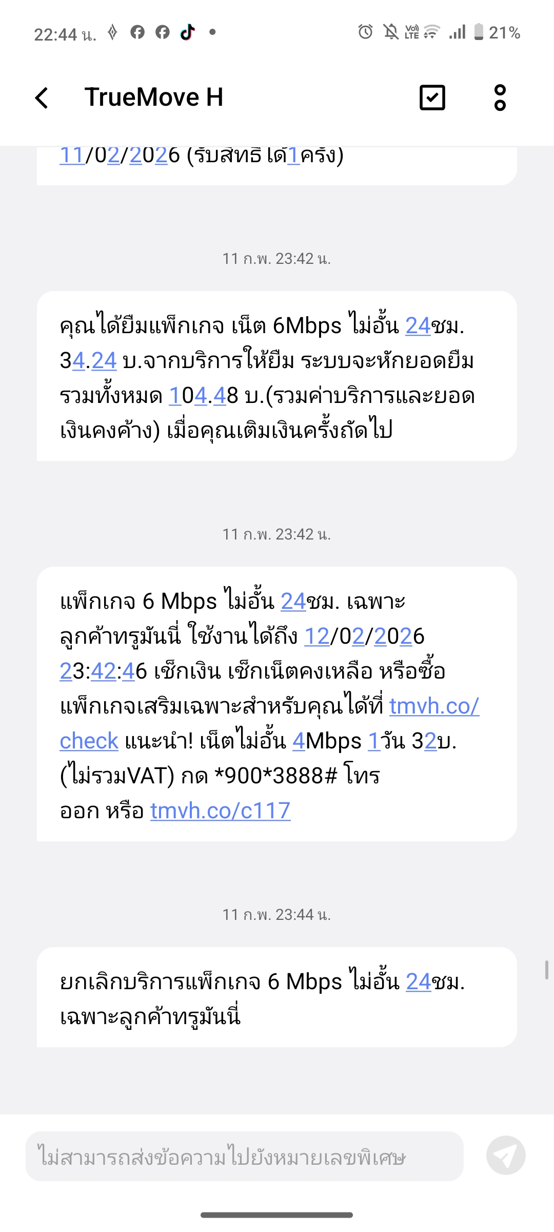 คือเราเติมเน็ตไว้ตั้งแต่17/02ค่ะ เผื่อไว้ให้ตัดเที่ยงคืน18/02 แต่เราลืมเราเปิดเน็ตทิ้งไว้(อันนี้เข้าใจความผิดของเราเอง)แต่ไม่มีข้อความเข้ามาแจ้งเตือนว่าเน็ตหมดค่ะ ทั้งๆที่ในข้อความบอกว่า จะเริ่มคิดค้่