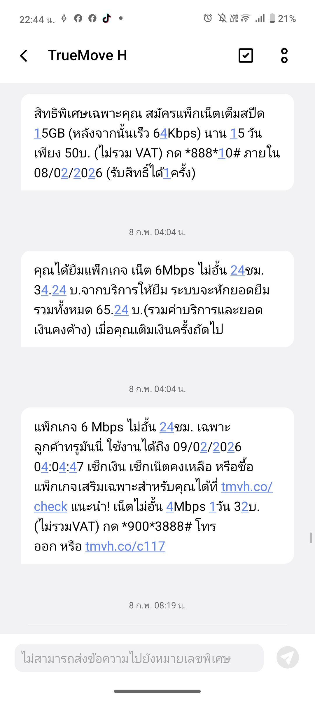 ใช้โปร (แพ็กเกจเน็ตไม่อั้น 10Mbps + โทรทุกเครือข่ายไม่อั้น 30วัน) ต่ออายุอัตโนมัติเรียบร้อยแล้ว สามารถใช้งานได้ถึงวันที่ 15/02/2569 เวลา 23:59น.และจะสมัครแพ็กเกจอัตโนมัติทุก 30 วัน ด่วนภายใน 15 นาทีนี