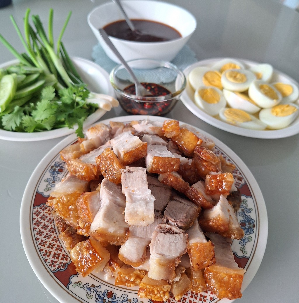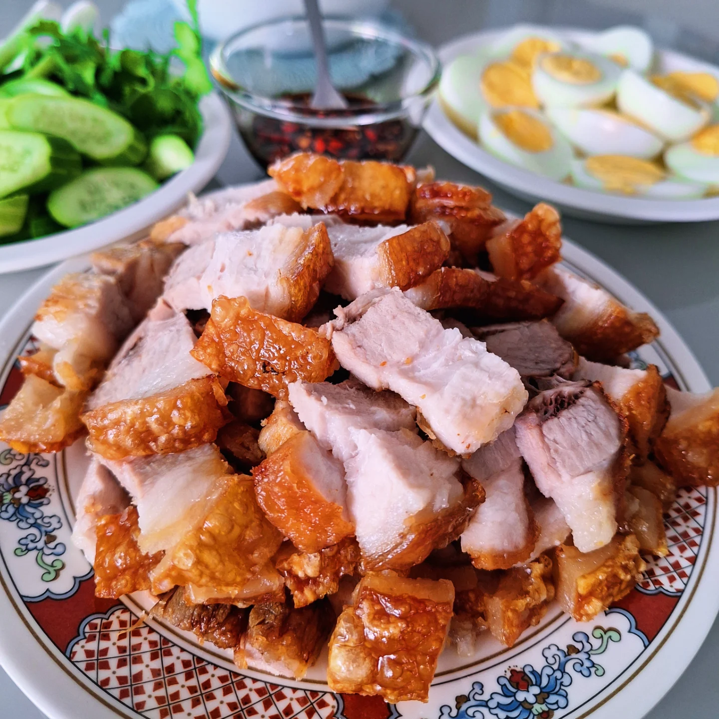 เมนูวันหยุดกับครอบครัว ทำเองง่ายๆ ปริมาณเยอะ อร่อย😁😆😋 เมนูแรก ข้าวหมูกรอบ หมูแดง ไข่ต้ม ง่ายๆจากหม้อทอดไร้น้ำมัน ทำครั้งเดียวทานได้ทั้งวัน