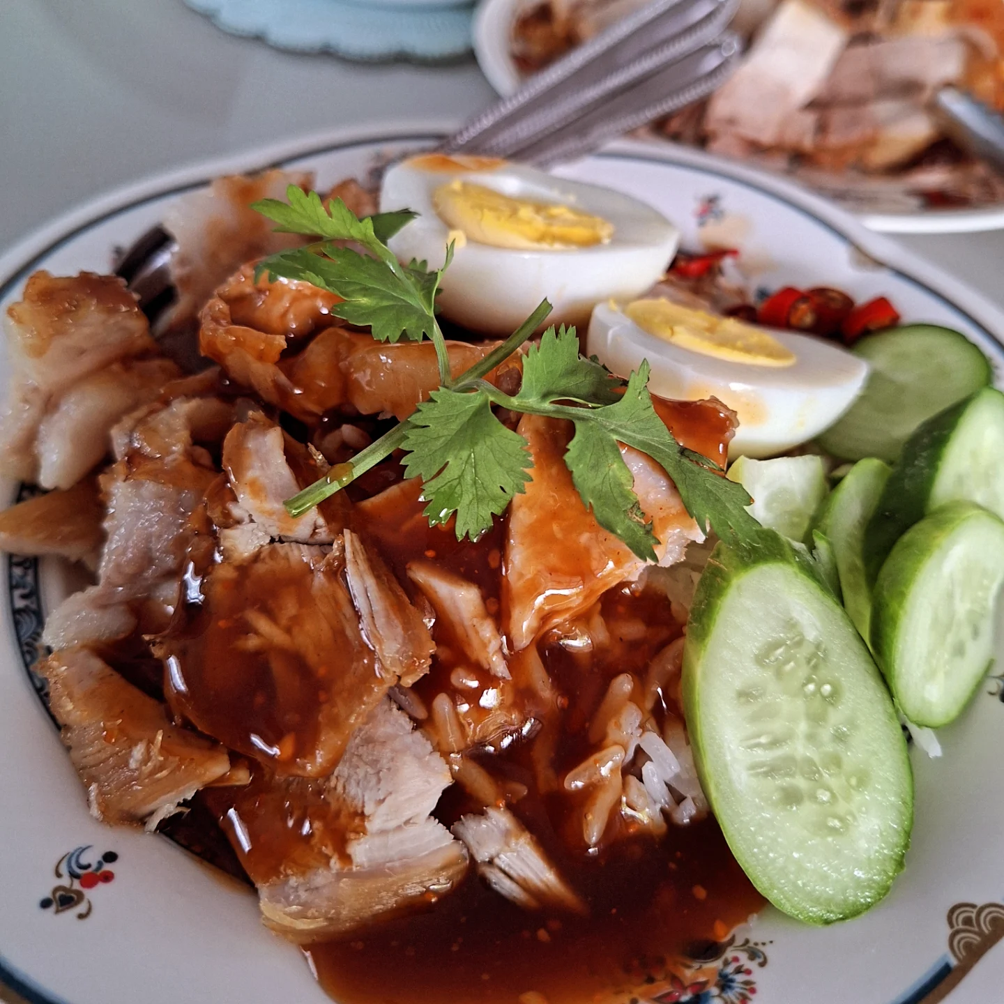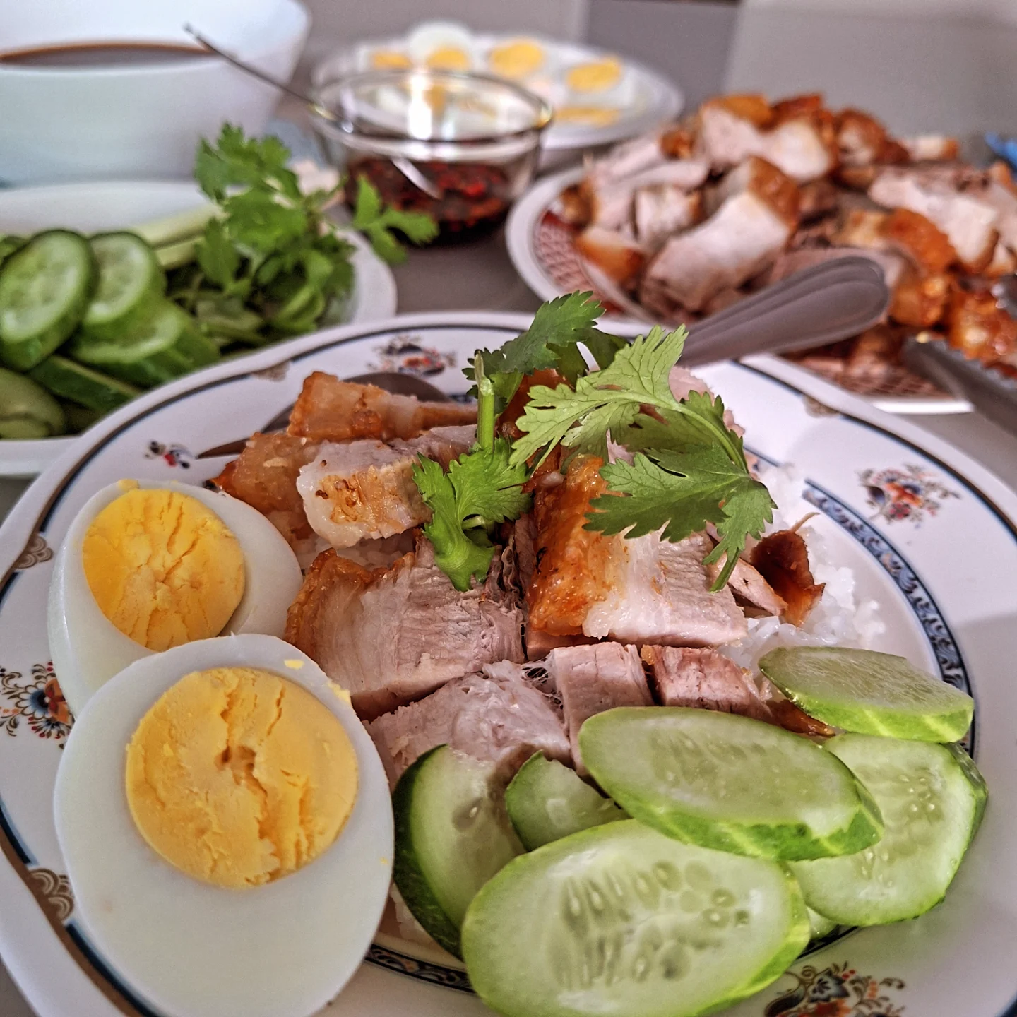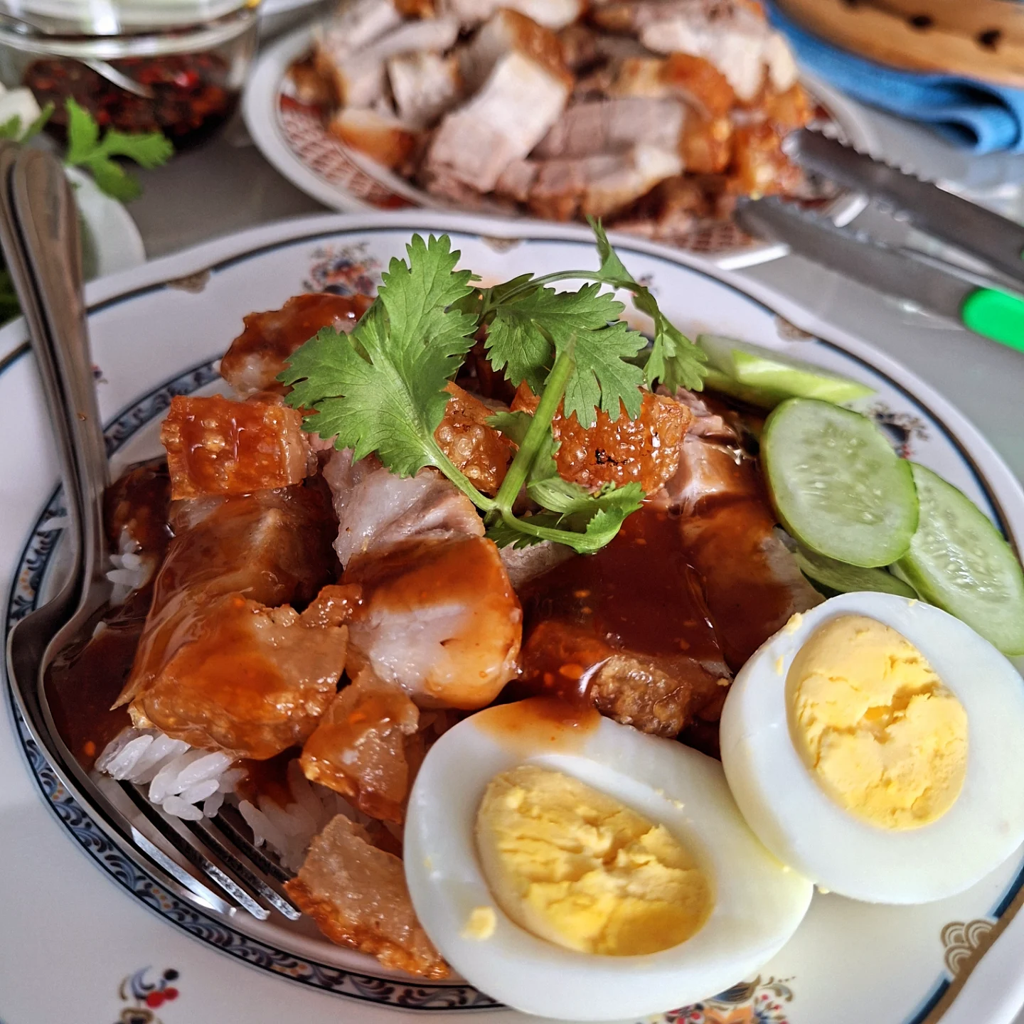 ต่อด้วยบางครั้งก็ไปซื้อเป็ดซักตัวครึ่งตัว หุงข้าว อบคอหมูทานง่ายๆแบบนี้ค่ะ 😊
