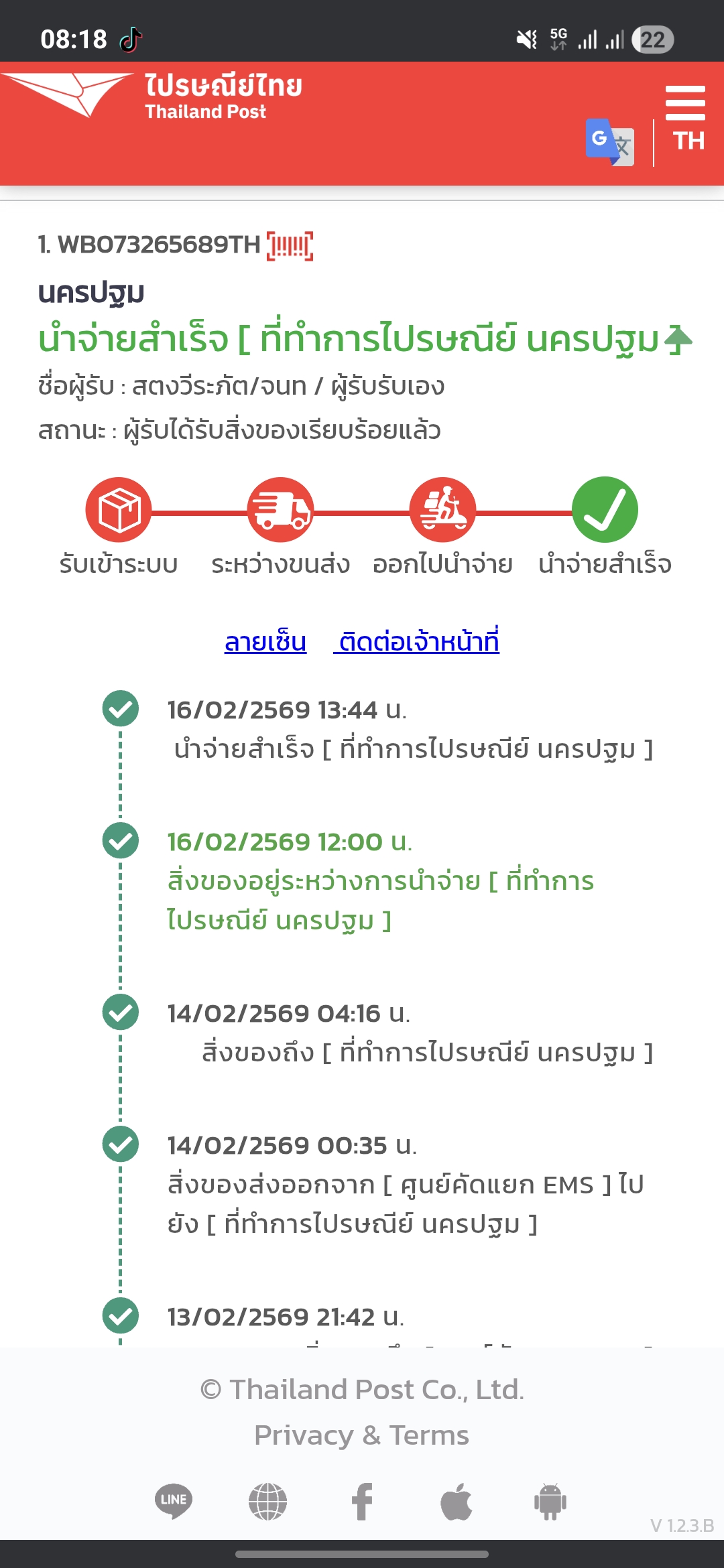 ไปรษณีย์ไทยขึ้นว่าจำหน่ายสำเร็จแต่ยังไม่ได้ของ??