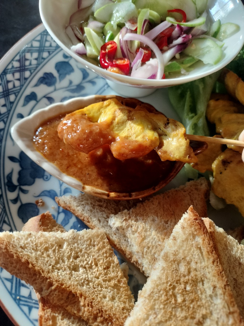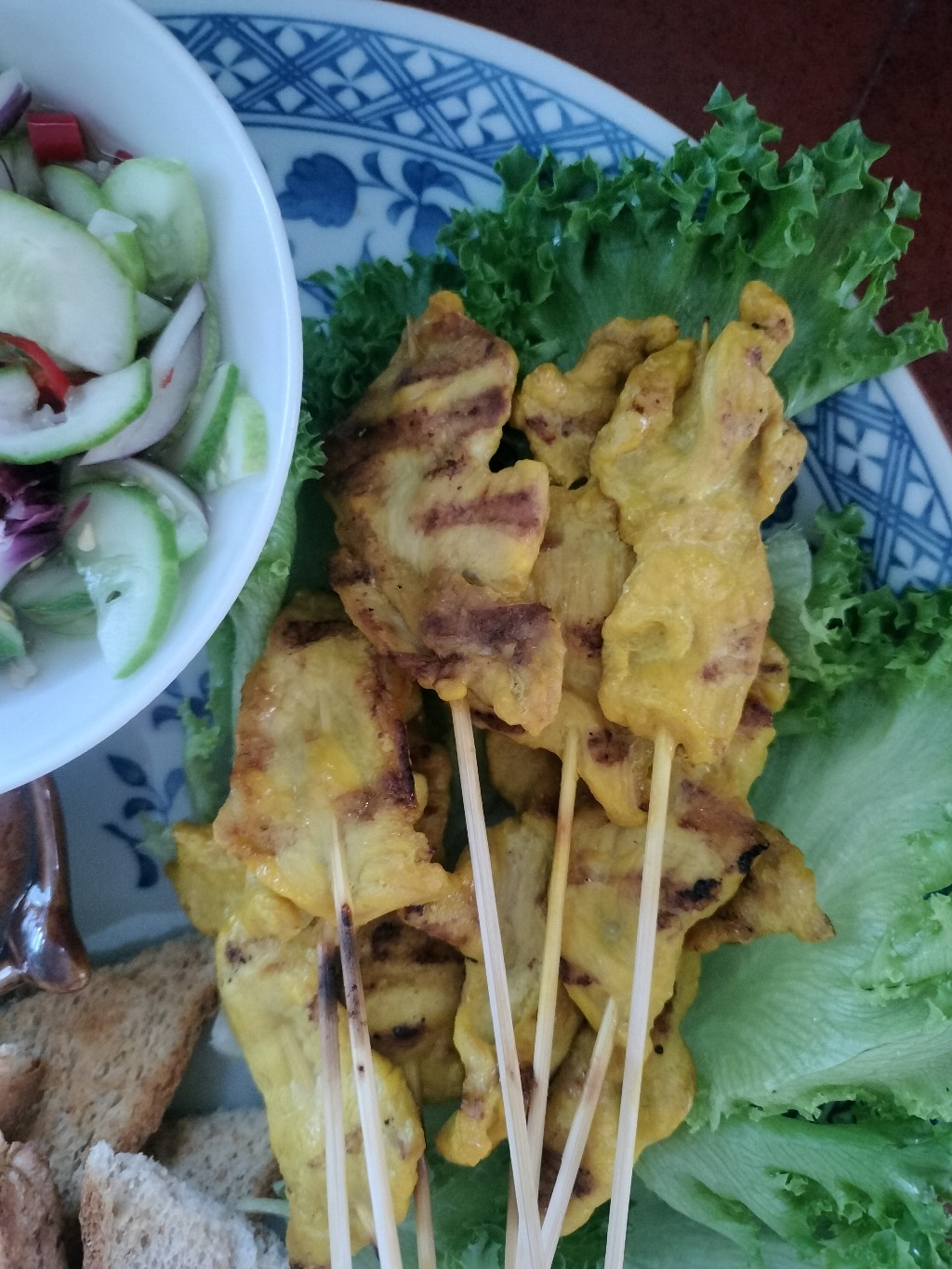 ...มื้อเช้านี้ มีหมูสะเต๊ะ...