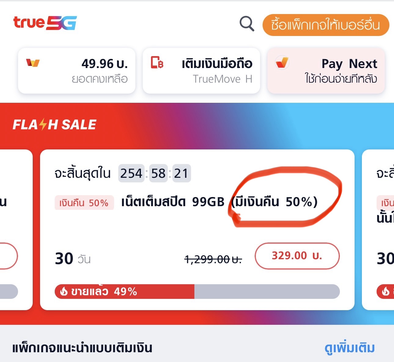พอดีจะซื้อเนตให้อีกเบอร์ กดไปเจอโปรนี้น่าสนใจ แจ้งว่ามีการคืนเงิน 50% แต่ไม่แน่ใจว่าคืนเงินจะคืนแบบไหน ซื้อผ่านแอป True Wallet