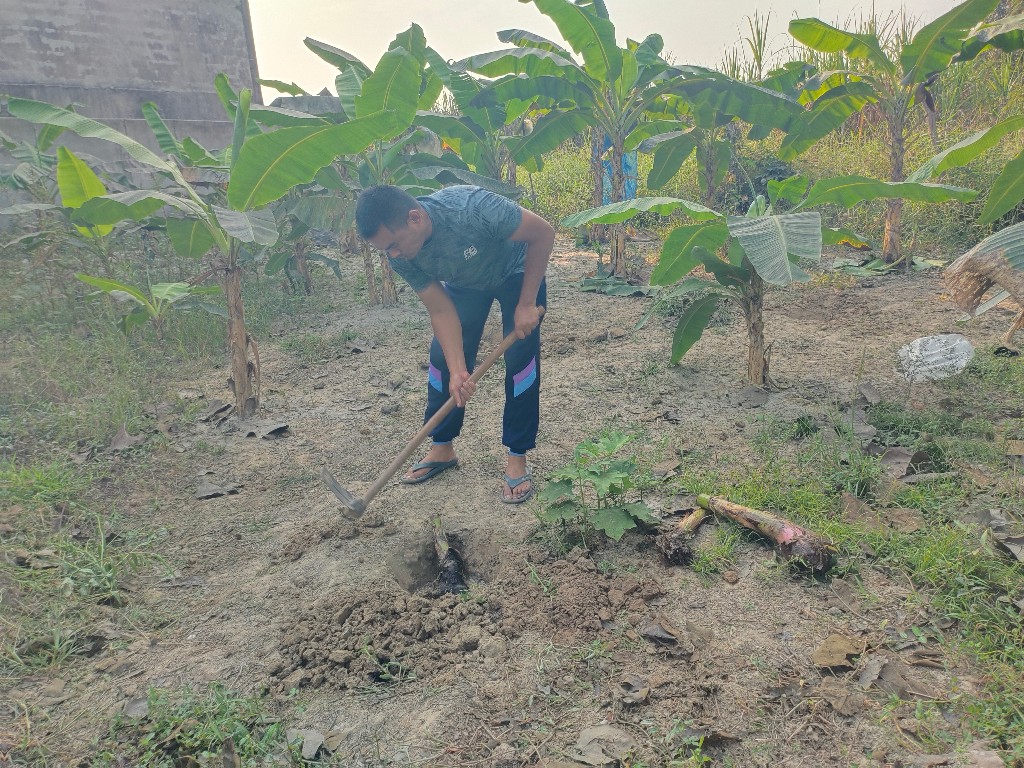 🎀 เราก็ทำการขุดหลุม ปลูกต้นกล้วยกันต่อ ขยายพื้นที่ไปเรื่อยๆ จนกว่าจะเต็มคะ 15/2/69