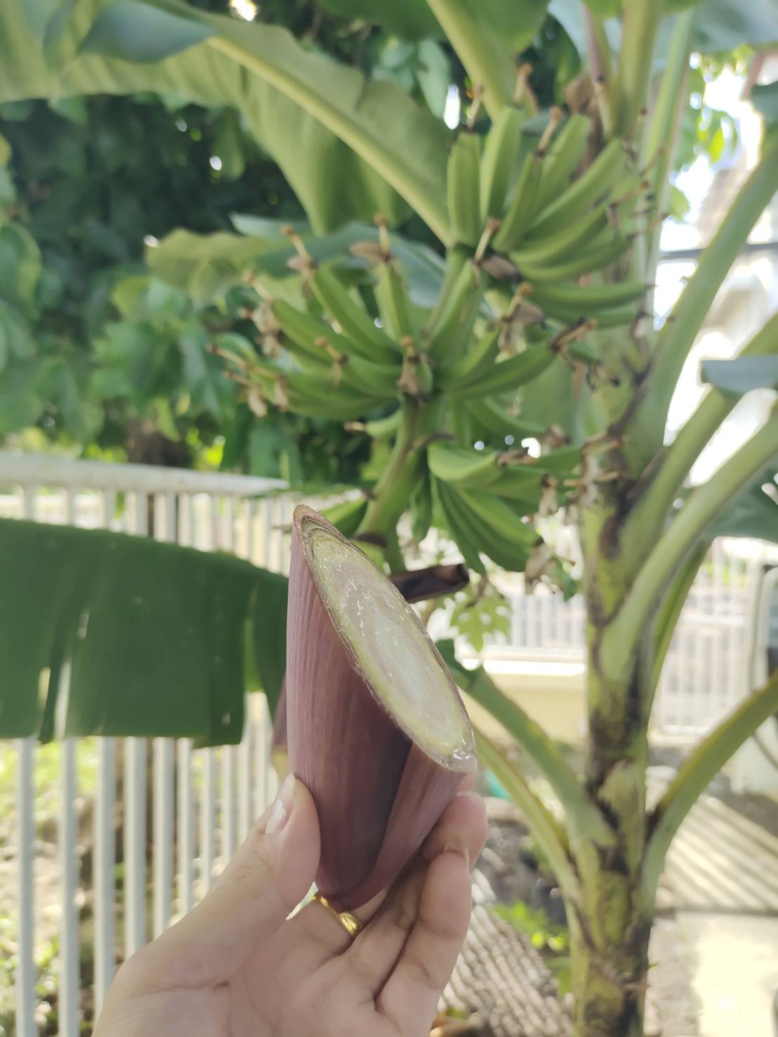 ลองตัดแบบเฉียงดู อยากรู้การเจริญเติบโต พอผ่านไปอีก 2 สัปดาห์ จึงตัดปลีกล้วยทั้งหมดเลยคะ