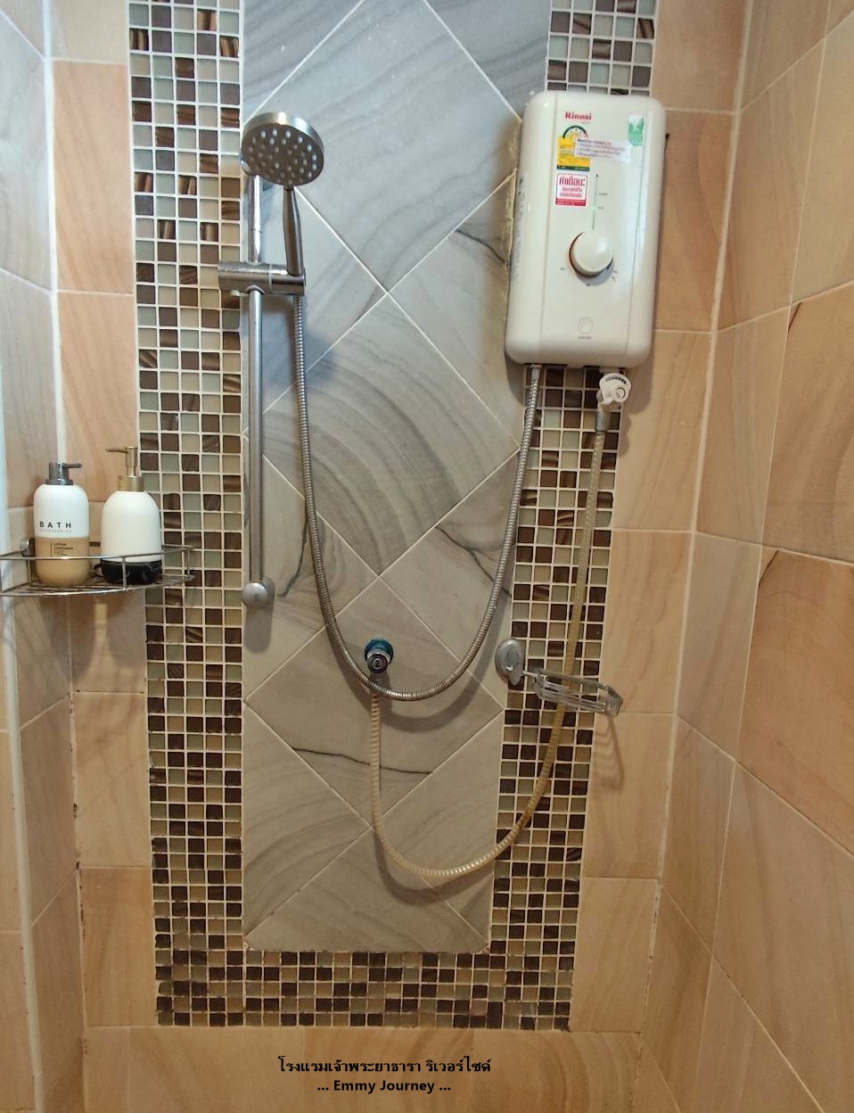 มีเครื่องทำน้ำอุ่น มีแชมพู สบู่เหลวไว้ให้