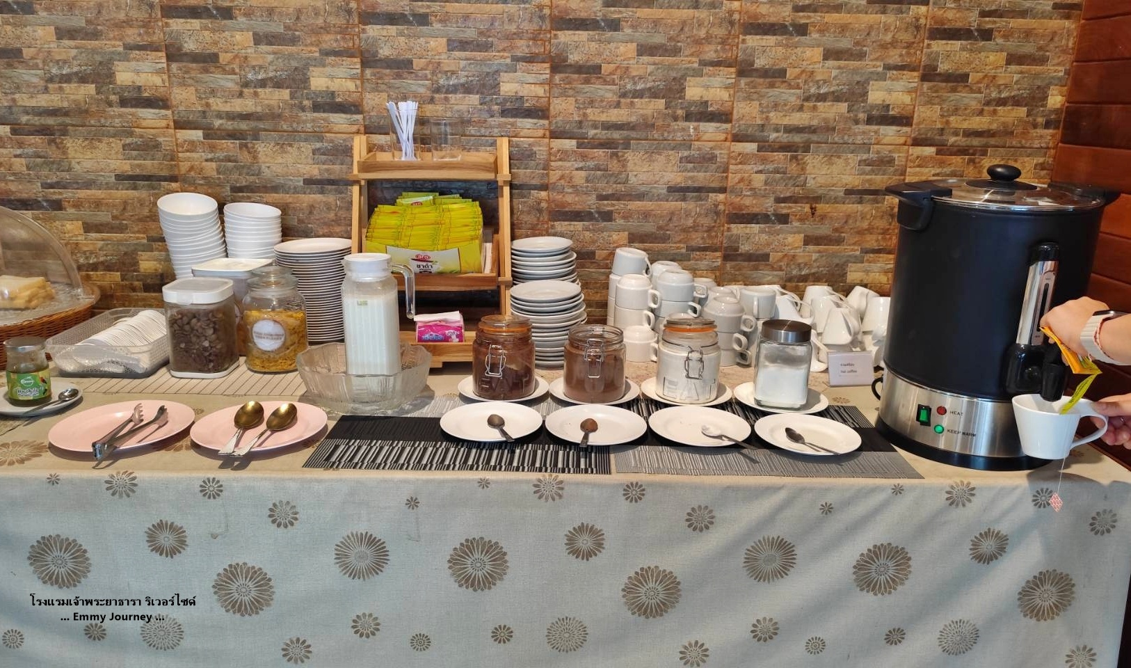 โรงแรมจะมีวางพวกขนมปัง ซีเรียล ชา กาแฟ ไว้ให้