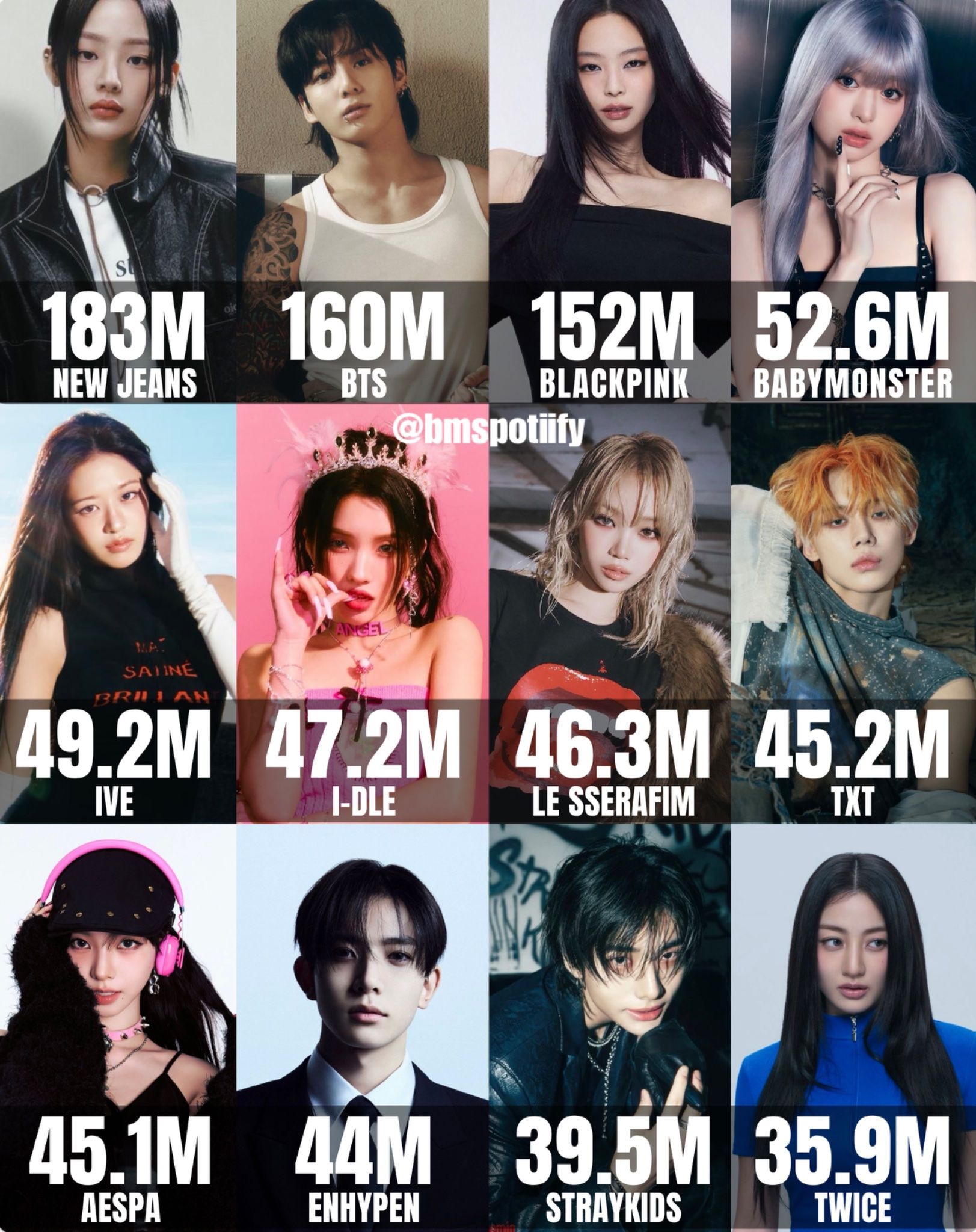 ศิลปิน K-Pop ที่มียอดสตรีมเฉลี่ยต่อเพลงสูงที่สุดใน Spotify