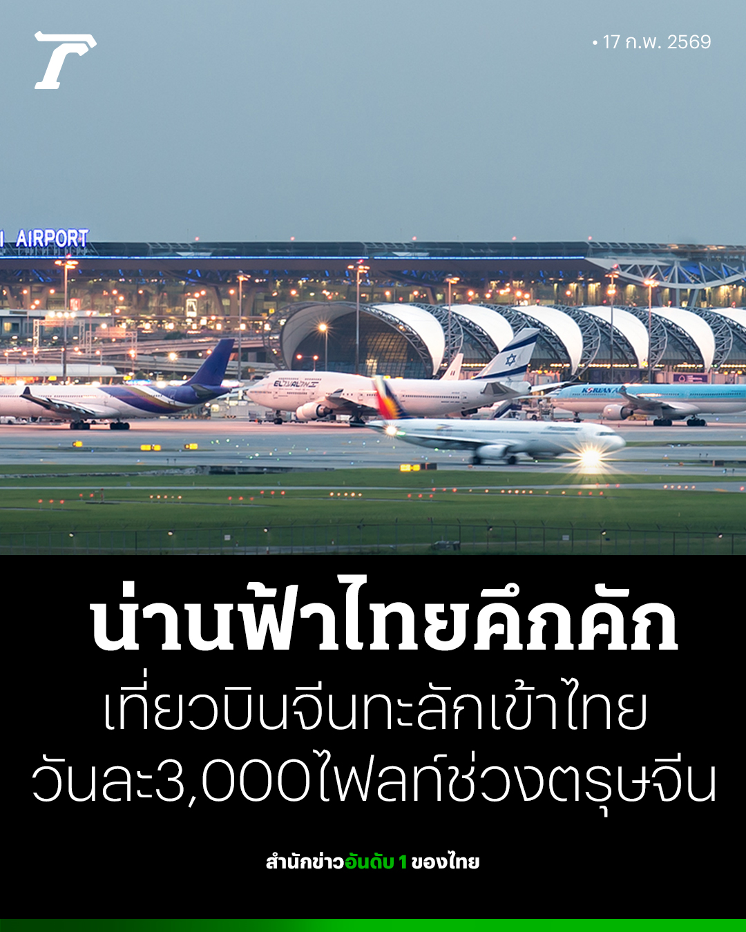 เที่ยวบินช่วงตรุษจีน สูงสุดวันละ 3,000 ไฟลท์ ส่งสัญญาณเชิงบวกท่องเที่ยวไทย