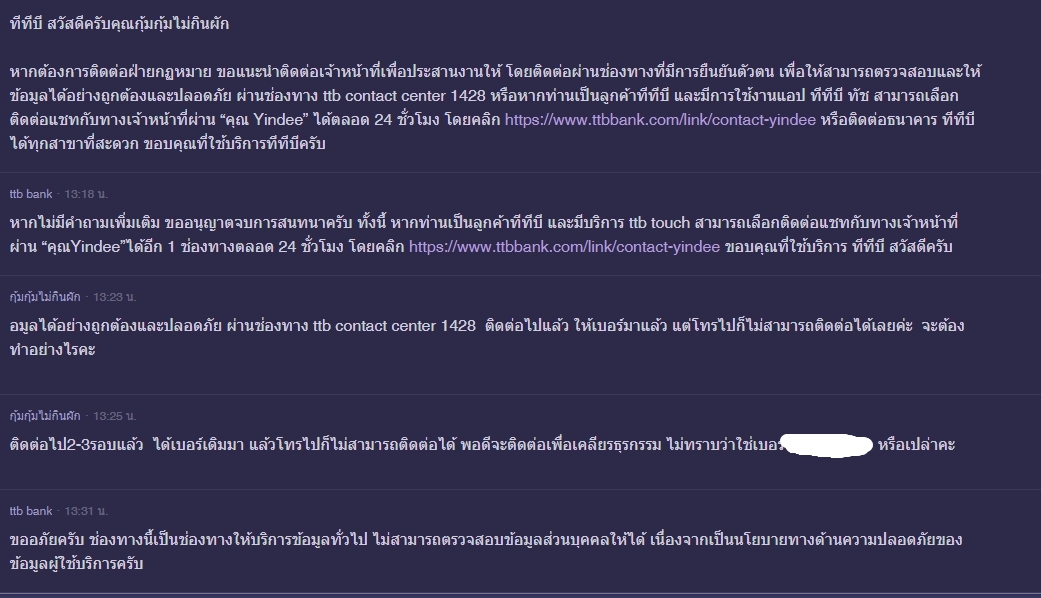 และทางเราก็ให้เบอร์และชื่อส่วนตัวไปในหลังไมค์ เพื่อให้ทางธนชาต สามารถติดต่อกลับมาได้