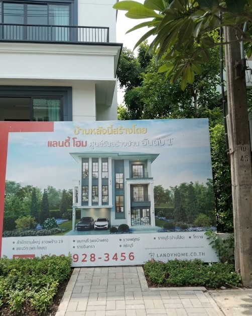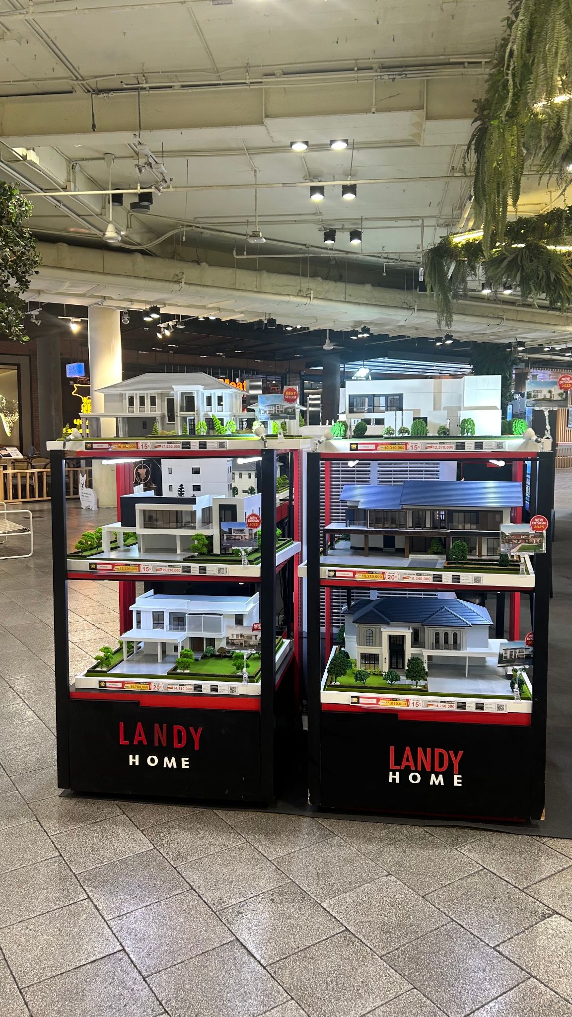 Landy Home ค่ะ วันนั้นจำได้ว่าไปเดินงานแฟร์เกี่ยวกับบ้านแบบไม่ได้ตั้งใจ เดินผ่านบูธของเขา สิ่งแรกที่ดึงดูดสายตาคือ "แบบบ้าน" ค่ะ คือมันมีความโมเดิร์น แต่ดูอบอุ่น ไม่แข็งทื่อ และดูมีความหรูหราแบบที่คนจีนน่าจะชอบ (สามีลัลชอบความแกรนด์นิดๆ ค่ะ 555)