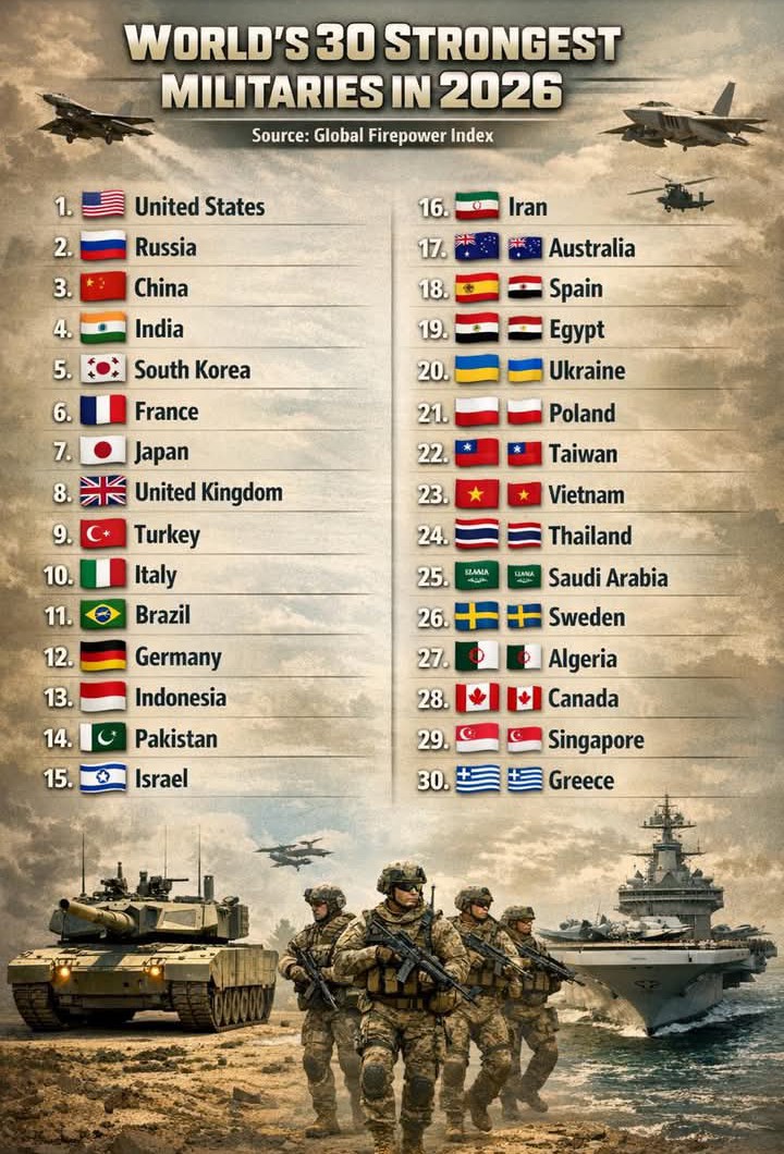 Top 30 การทหารที่แข็งแกร่งที่สุดในโลกปี 2026