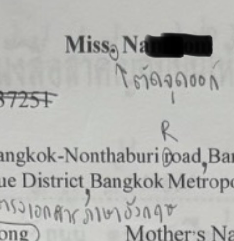 (ตัวอย่างเอกสารที่เจ้าหน้าที่แก้มา)
