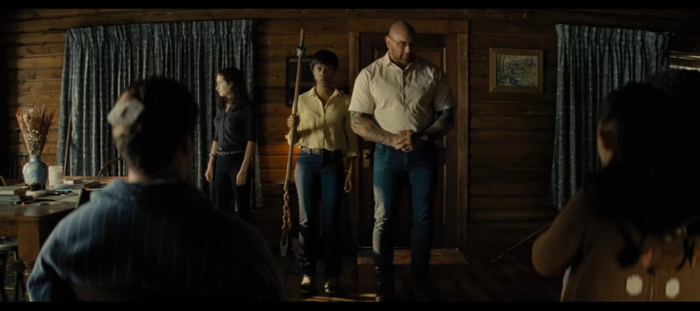หากถามว่าทำไมหนังเรื่องนี้ถึงควรค่าแก่การดู คำตอบแรกคือการแสดงของ Dave Bautista ที่ลบภาพจำจากบทบาทสายบู๊กลายเป็นชายผู้แบกความทุกข์ของโลกไว้บนบ่าได้อย่างน่าอัศจรรย์ ทุกคำพูดที่เขาพ่นออกมามีความนุ่มนวลแต่หนักแน่นจนคนดูเองก็เริ่มไขว้เขวว่าเขามโนไปเองหรือเป็นเรื่องจริงกันแน่ นอกจากนี้งานกำกับของ M. Night Shyamalan ในเรื่องนี้ยังเน้นไปที่ความอึดอัดในพื้นที่จำกัด ซึ่งทำให้คนดูรู้สึกเหมือนถูกขังอยู่ในกระท่อมนั้นด้วย