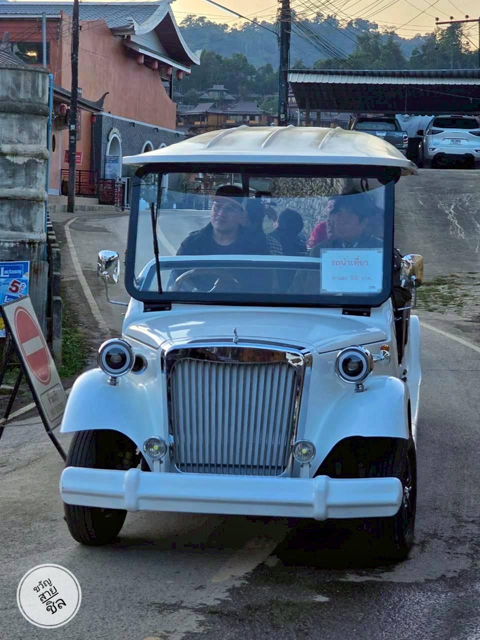 มีรถแบบนี้วิ่งรอบหมู่บ้านรักไทย คนละ 50 บาทต่อเที่ยว
