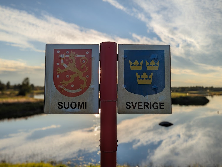 ในป้ายที่เขียนว่า Suomi และ Sverige ตามที่เห็น