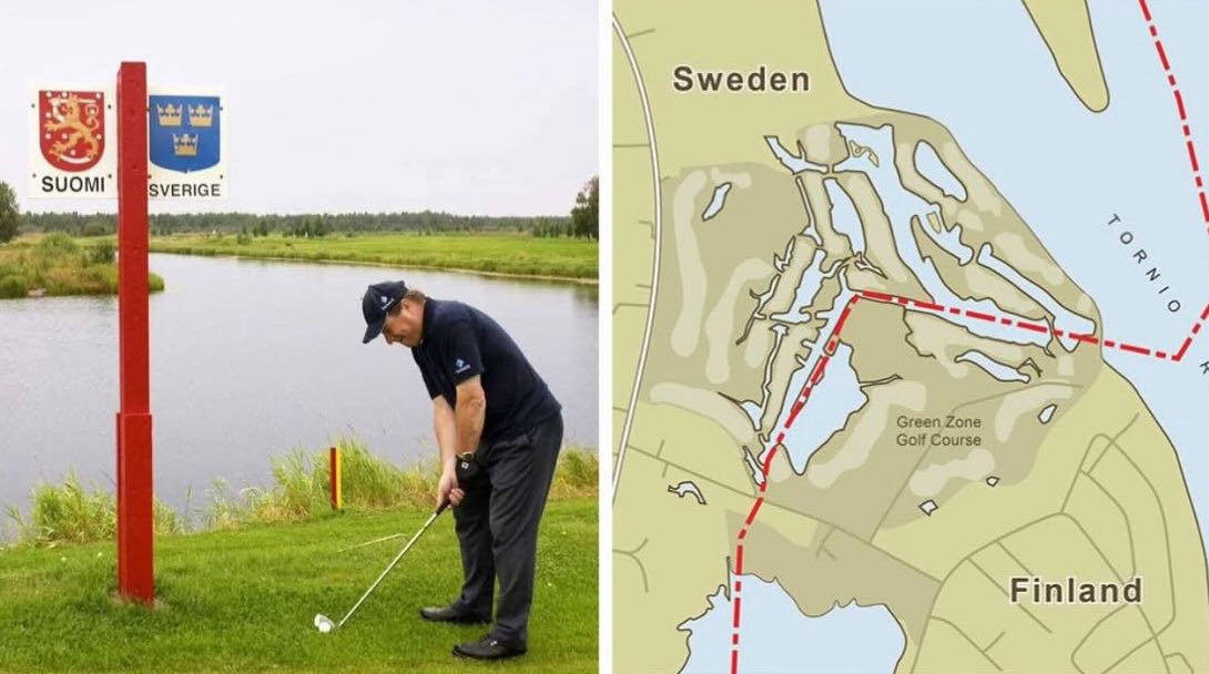 Green zone golf club เป็นสนามกอล์ฟอยู่กึ่งกลางชายแดนสวีเดน ฟินแลนด์