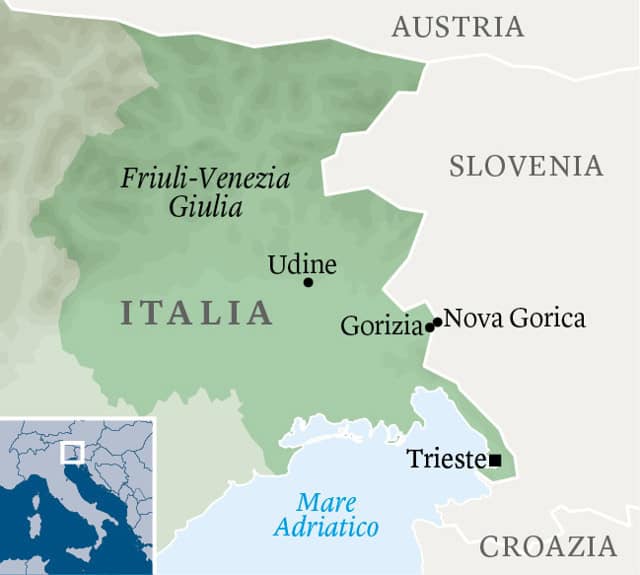 ดูแผนที่ประกอบจะเห็นว่าฝั่งซ้ายคือ อิตาลี ฝั่งขวาคือ สโลวีเนีย