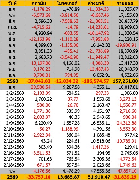 Sinthorn Summary 18/2/2569 : ต่างชาติซื้อสุทธิ 2,023.66 ลบ.