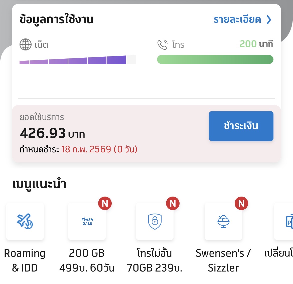 ค่าเน็ต Ais จ่ายไปส่วนนึงแล้ว ค้างอยู่290จ่ายอีกทีเดือนหน้าได้ไหมคะ กำหนดชำระว้นนี้ค่ะ 0655278877