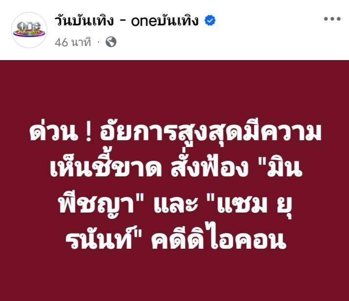 อัยการสูงสุด ชี้ขาดสั่งฟ้อง มิน พีชญา - แซม ยุรนันท์ ในคดีดิไอคอน -กรณีคดี “ดิไอคอน กรุ๊ป” ที่ทาง นายยุรนันท์ ภมรมนตรี หรือ แซม และ น.ส.พีชญา วัฒนามนตรี หรือ มิน อัยการคดีพิเศษมีคำสั่งไม่