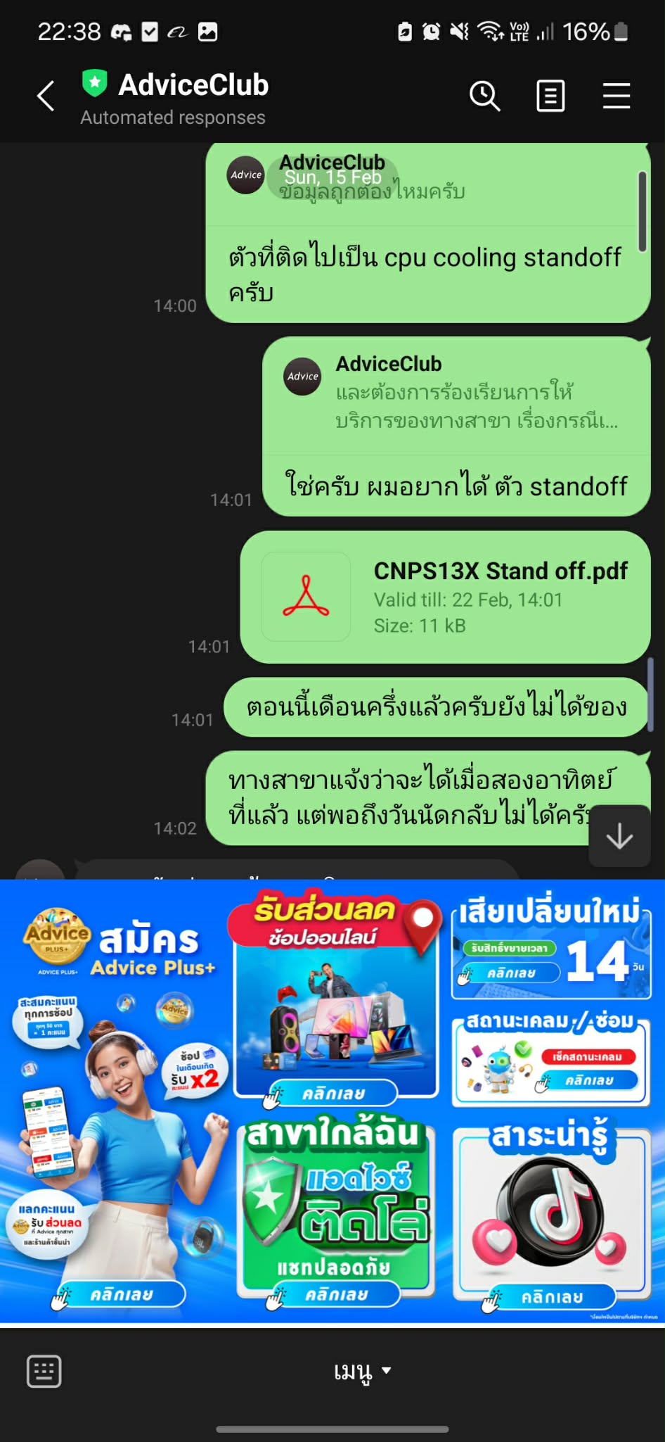 [CR] การบริการเคลมประกันของ ADVICE นาน 2 เดือนตอนนี้ยังไม่ได้