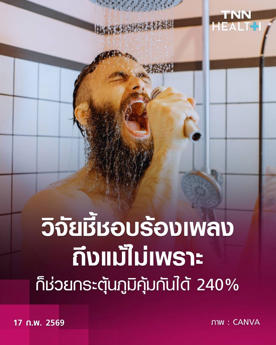 • สาระสำคัญ: การร้องเพลงต้องใช้การหายใจแบบ Diaphragmatic Breathing (การหายใจด้วยกระบังลม) ซึ่งช่วยเพิ่มประสิทธิภาพการแลกเปลี่ยนก๊าซในปอด และส่งผลโดยตรงต่อการทำงานของระบบประสาทอัตโนมัติ (Autonomic Nervous System) ที่ควบคุมภูมิคุ้มกัน