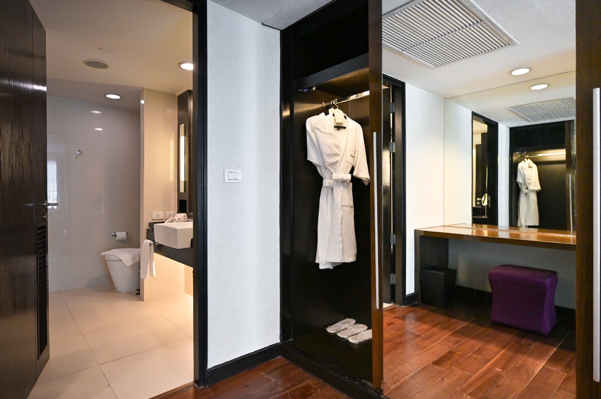 🔸 บ้านเราพักห้อง One Bedroom Suite ห้องกว้าง ตกแต่งเรียบหรู มีโซนห้องนั่งเล่น โซนรับประทานอาหาร ห้องนอนแยกเป็นเป็นสัดส่วน เตียงกว้างนอนสบาย ห้องน้ำมีอ่างอาบน้ำให้แช่เพลินๆ
