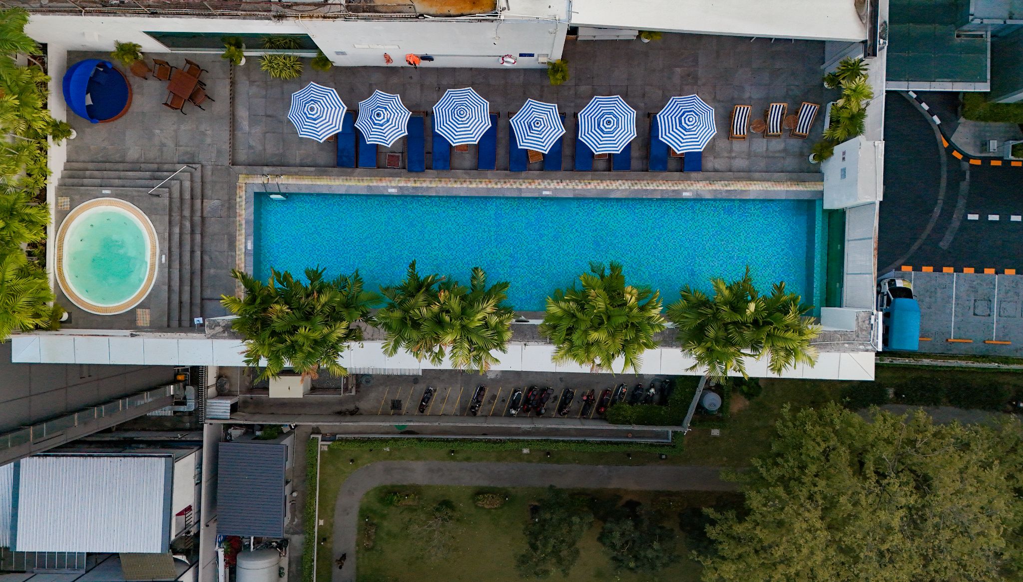 🔸 สระว่ายน้ำสวย ว่ายสนุก มีอ่างจากุชชี่น้ำอุ่นให้แช่ฟินๆ