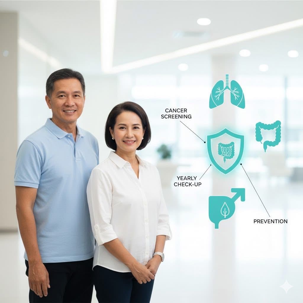 การตรวจสุขภาพประจำปี (Check-up) เป็นเรื่องดีครับ แต่ต้องไม่ลืมเพิ่ม "รายการคัดกรองมะเร็ง" ที่เหมาะสมกับช่วงอายุและปัจจัยเสี่ยงของคุณเข้าไปด้วย "การลงทุนกับการตรวจคัดกรองในวันที่ยังไม่ป่วย คือการซื้อเวลาที่มีค่าที่สุดให้กับชีวิตคุณและคนที่คุณรักครับ"