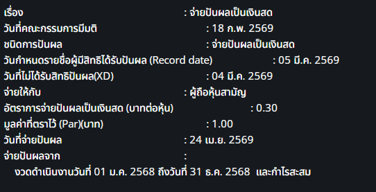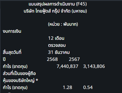 TFG ปันผล และผลกำไรจ้ะ