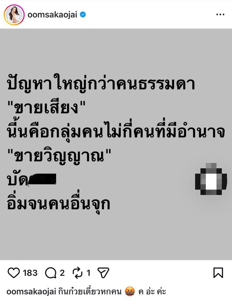 ‘อ๋อม สกาวใจ’ ฟาดรัว ลั่นบัดxบ จวกคนมีอำนาจ ‘ขายวิญญาณ’ บดขยี้ศักดิ์ศรีประชาธิปไตย ...!