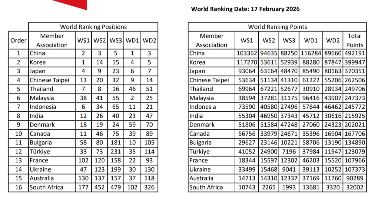 World Team Ranking ของทีมที่ผ่านการคัดเลือก เข้าร่วมการแข่งขัน TC/UC 2026