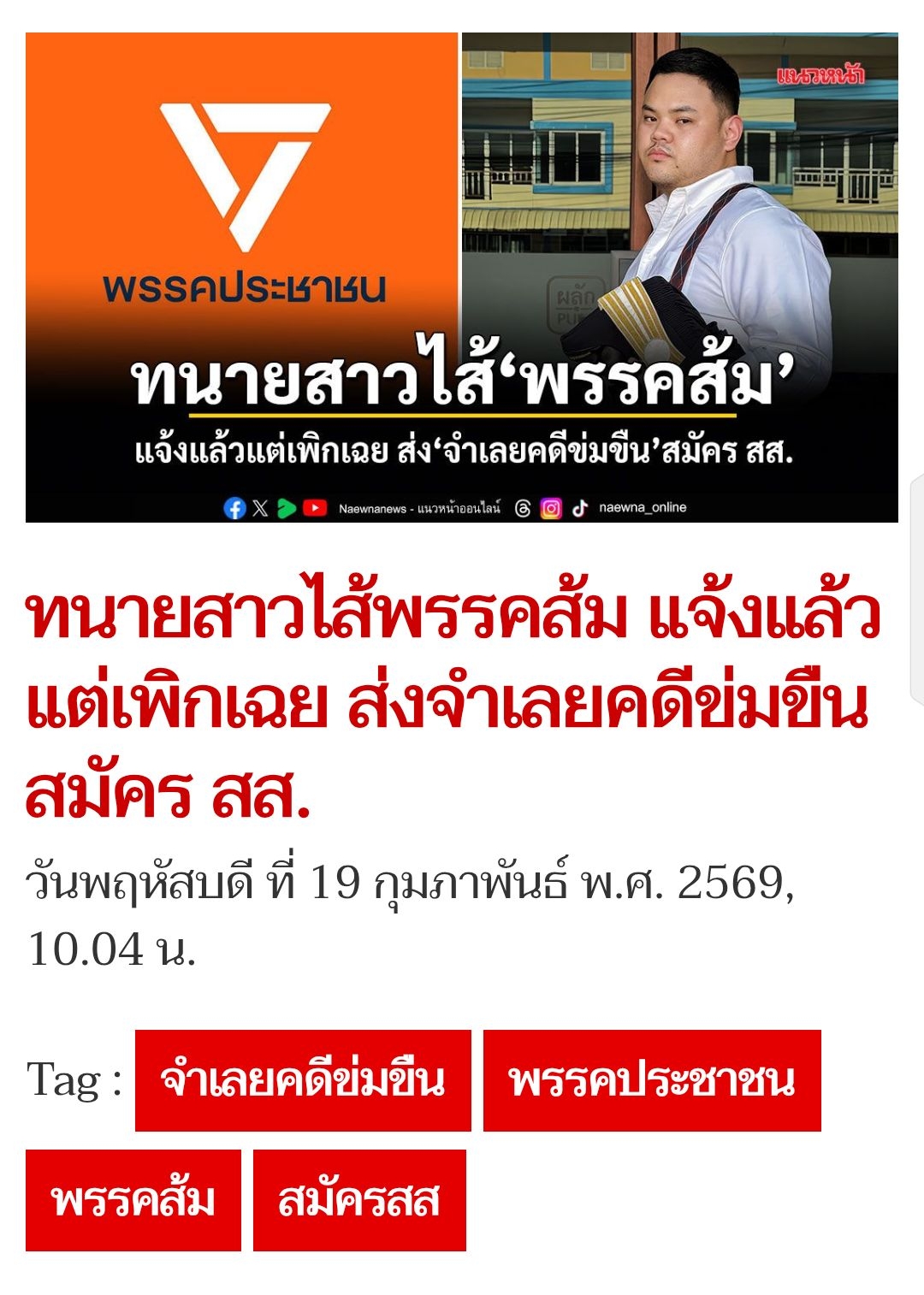 🔊 ทนายสาวไส้พรรคส้ม แจ้งแล้วแต่เพิกเฉย ส่งจำเลยคดีข่มขืน สมัคร สส.