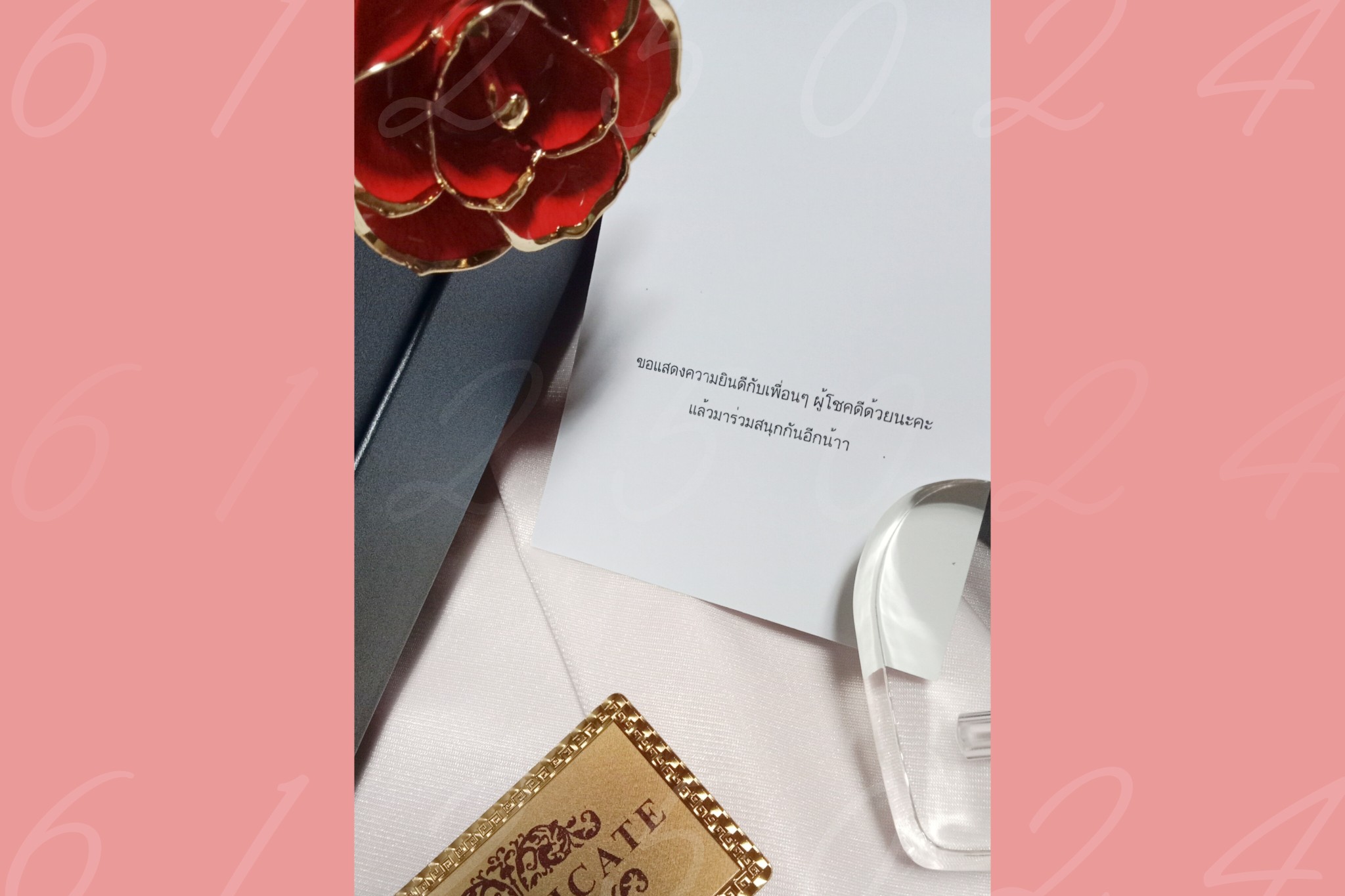 ในส่วนของรางวัลที่จขกท. เลือกไป คือ SET C กุหลาบเคลือบทองคำแท้ 24K