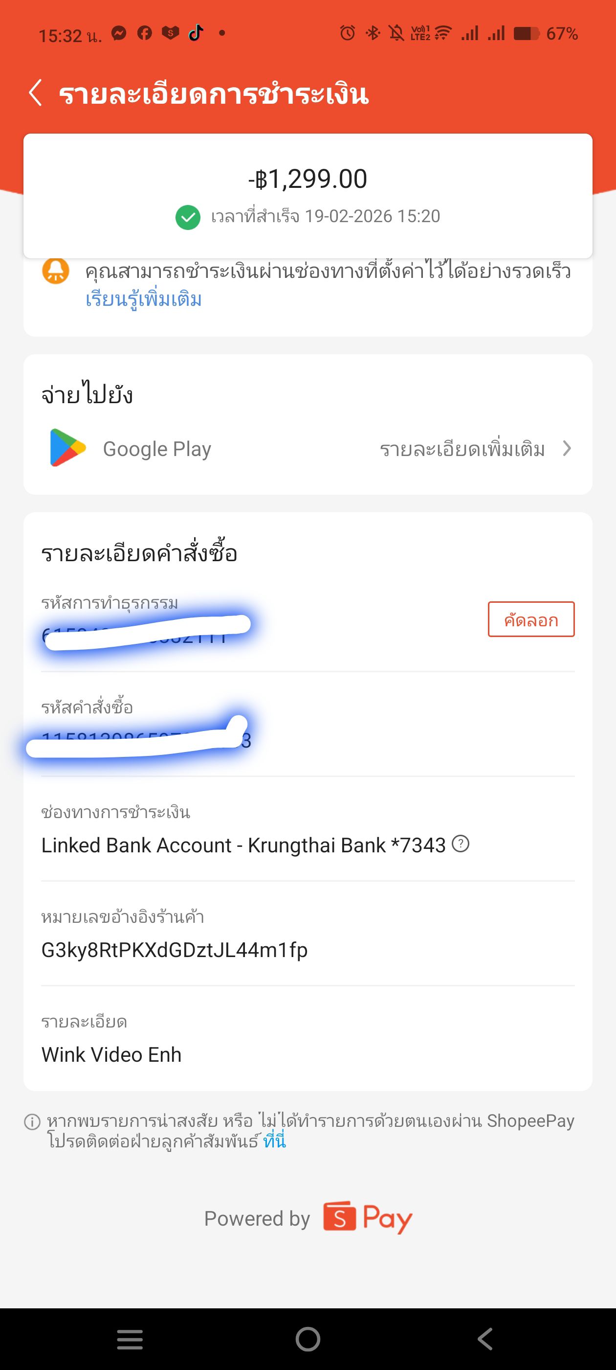 โดนแอป Wink Video หักเงินอัตโนมัติผ่าน ShopeePay 1299 บาท ไม่เคยใช้งาน ไม่เคยโหลด