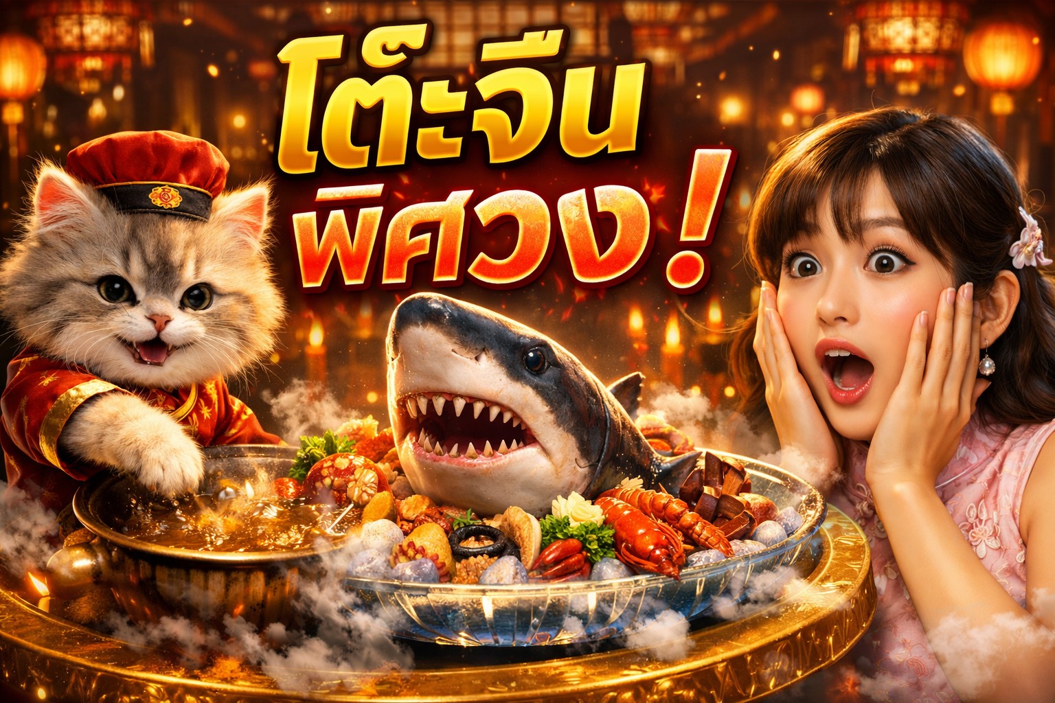 ภัตตาคารจีนสุดหรูระดับจักรพรรดิ เปิดตัวเมนูอลังการบนโต๊ะหมุนทองคำ จานยักษ์เสิร์ฟปลาฉลาม หอยเป๋าฮื้อ และหม้อไฟมังกรสุดตระการตา ทุกอย่างดูแพง หรู และพรีเมียมขั้นสุด